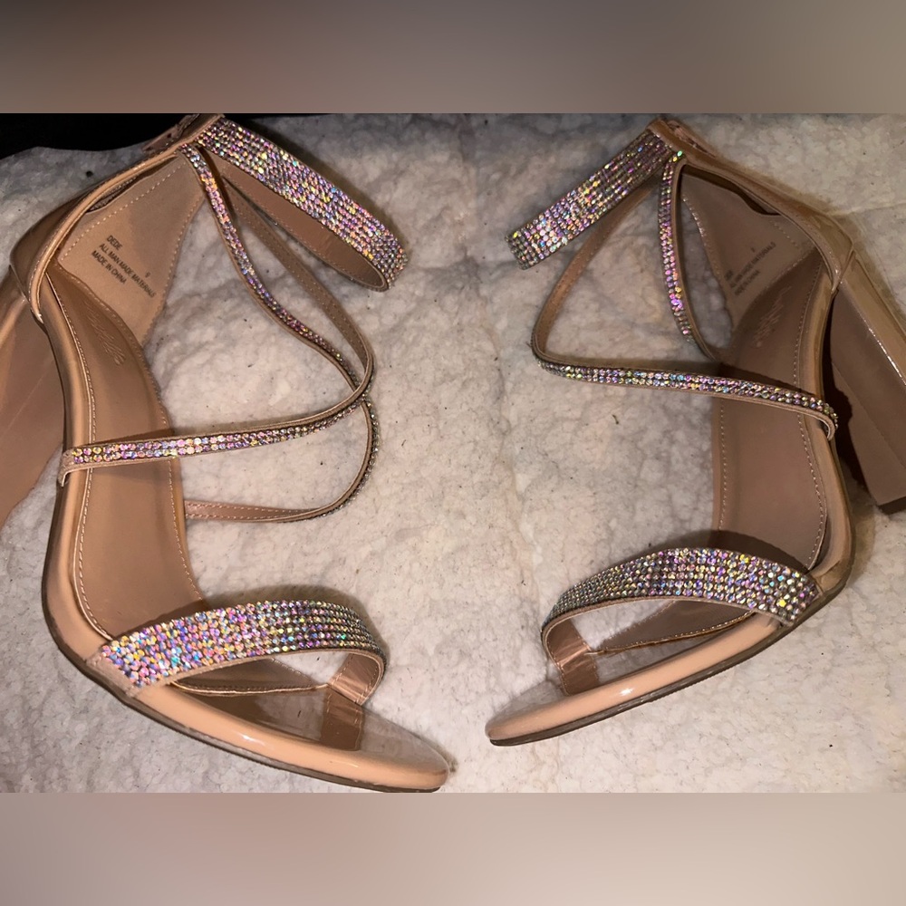 Brand new without tags rhinestone straps heels The material is a glossy finish Heel length is about 3 1/2