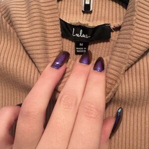 Nude/tan ribbed knit bodysuit from Lulu's. Thick and stretchy fabric. Bottom snap closure and mock turtleneck style. Size M.
