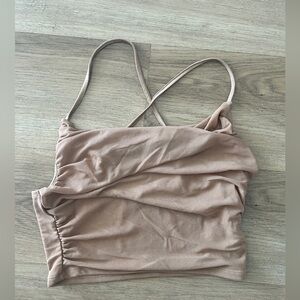 Nude Ruched Cross-Back Crop Top - Size: Medium- NWOT