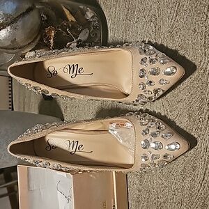 Nude Suede Rhinestone Heels
