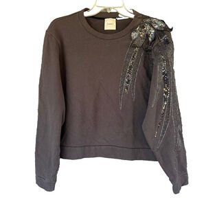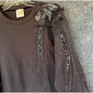 Nude Sweatshirt Womens Black Floral Embroidered Embellished Sequin Relax Sparkly