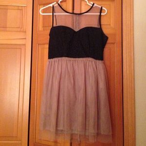 Boutique dress in excellent condition worn once. Beautiful black beaded lace bodice with fun Toole bottom. Back of dress has exposed zipper.