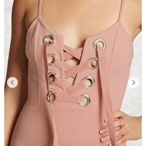 Nude color Forever 21 Small Bodycon Dress with Strappy Front. Great condition. Only worn once. Lace-Up Grommet.