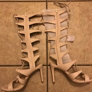 These sexy pumps are lace up the leg they also have zippers on the inner part of the shin as well for quick and easy put on so you never have to un-do the laces.