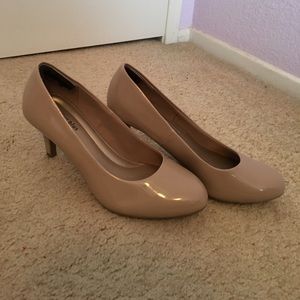 Nude heels. 1.5 inch heel. Worn once. No damage. Has cushion for feet
