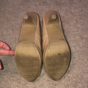 Gently worn nude heels. Open toe with a heel height of 4” from top to bottom. A few scuff marks but they’ll probably buff out!