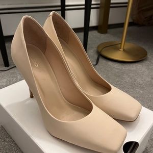 Classy nude heels from Aldo. Square toe, 6” heel. I wore them once to a wedding I was mostly sitting down at. Fits 8 or 8.5.