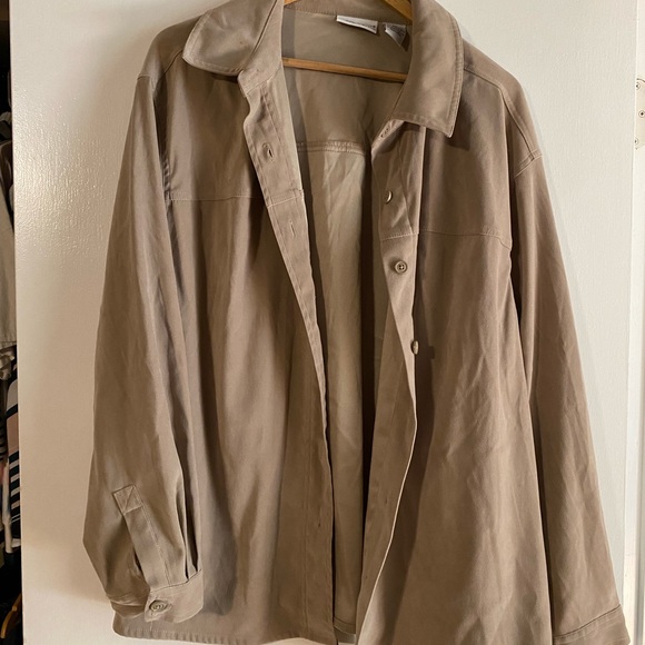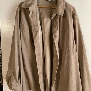 Super cute nude jacket, can be worn as a button down blouse or a jacket with an undershirt. Small spot on the top but it blends in with the nude.