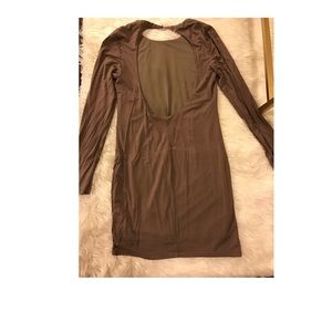 Snag this bodycon mini to dress up or down. Long sleeves with large back cutout. Button closure at the top of the dress. This dress was only worn once. The dress was cleaned and hung up across a hanger. Due to sensitive cotton fabric there is a line (looks white) across the front of the dress from this. Other than that, the dress is in perfect condition. This imperfection is reflected in the price. Any questions, please ask!