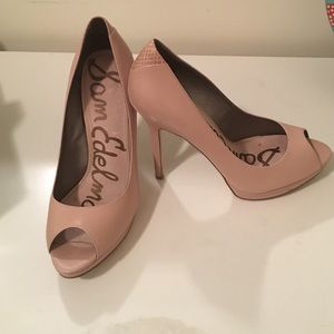 Very cute nude leather peep toe, Sam Edelman heels. Worn one time to a wedding, in good condition.