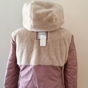 NWT antique rose quilted puffer coat jacket with large faux fur hood and partially fur lined interior. Even though it is faux fur it feels just like rabbit fur. Incredibly soft, warm and thick. Size is L. The coat measures 21" from pit to pit and 19" in the waist. The hood is detachable and the coat is machine washable. It has both zip and snap closure.