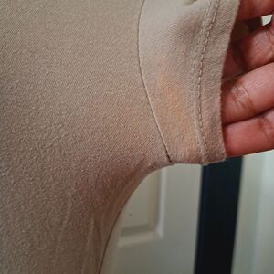 Nude v-neck fitted t-shirt. Size small. has what I think are bleach stains at the underarms. I'm not sure if that's from a deodorant?