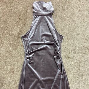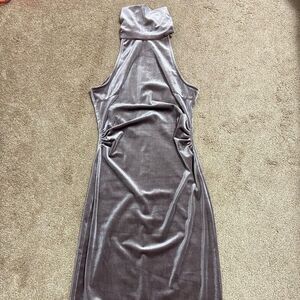 Nude Mauve Velvet Turtleneck Midi Bodycon Dress