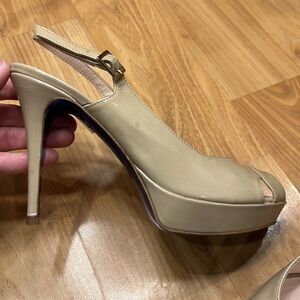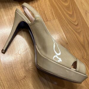 Nude Patent Leather Peeptoe Heels Womens 7.5