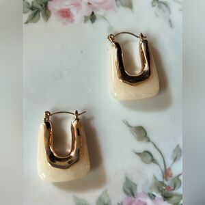 Cream crystal (resin) hoop cuff earrings in gold tone