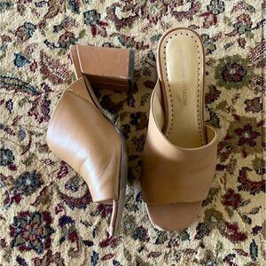 Tan thick heeled mules