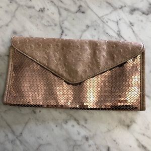 Gorgeous Bebe nude/rose gold sequin clutch with zippered compartment. Barely used! Goes with just about everything!