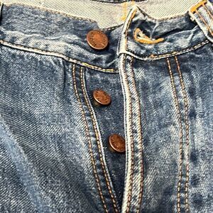Two Super Minor flaws being a super minor fray on top of right back pocket and a couple of slight discoloration spots just above left back pocket but itâs not as bad as the picture makes it look. (See last 2 pictures for flaws)