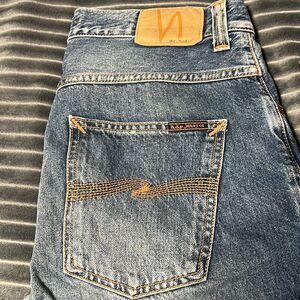 đ„đ„Nudie Jean Co Jeans âSleepy SixtenâCelestial Orange ButtonâFly - 31x30 - EUC