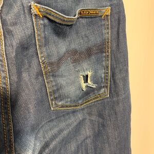 Excellent used condition! Wear to fabric on the right rear leg opening, and the right back pocket. No stains, nor fabric disfiguration. Manufacturer recommends 6 months of hard wear before the first wash to break in the denim when purchased new. These are broken in for you and buttery soft. These will easily become your favorite jeans the minute you put them on!