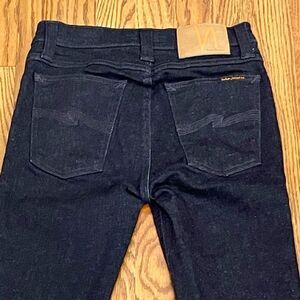 Near new Nudie Jeans Company High Kai Dark Wash Jeans. Size 27. Wash: Recycle Dry Navy. Perfect condition. No stains or damage. 68%organic cotton/29%recycled cotton/3%elastane. Good stretch. From smoke free pet free home. Measurements laying flat: