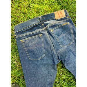 Introducing a pair of Nudie Jeans In Dark Blue 31W 30L.
