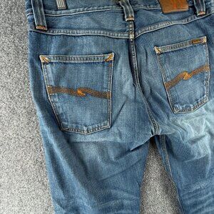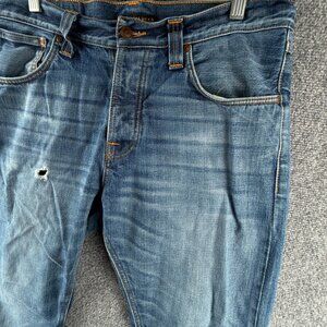 Nudie Jeans Men Denim Jeans Steady Eddie Orange Crinkle Blue Cotton ACTL 33X28