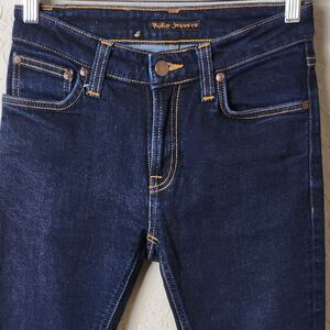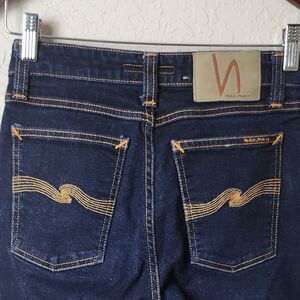 Nudie Jeans Skinny Lin Dry Deep Orange Dark Blue Denim Jeans 27/30