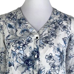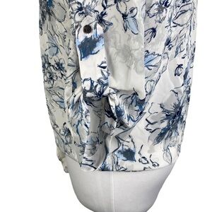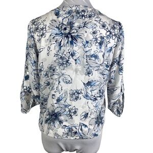 Nue Options Petite Women's 2P Blue White Floral Tie Waist Half Sleeve Roll Tab Button Down Blouse. Great Condition. No rips, flaws, or stains. Smoke free home.