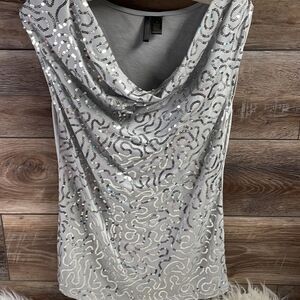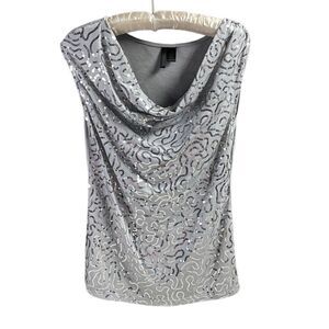Nue Options Sequin Sleeveless Top Blouse, Gray and Silver, Size Medium