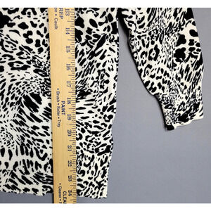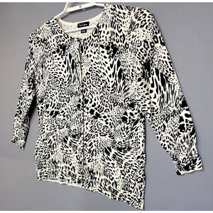 Nue Options Sweater Womens Medium Black White Animal Print Button Cardigan Knit Top