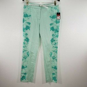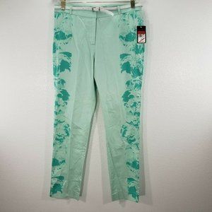 Nue Options Womens Pants Size 8 Signature Fit Capri Teal Blue Floral Belted New with tags