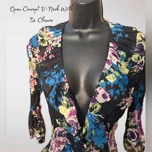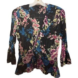 Nue Options Women’s Pleated Print 3/4 Sleeve Open Front Dress Casual Top Size M
