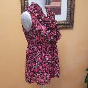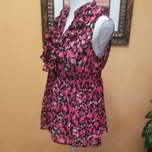 Nue Options Womens Ruffle Front Button Sheer Top