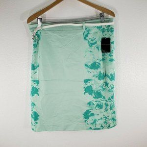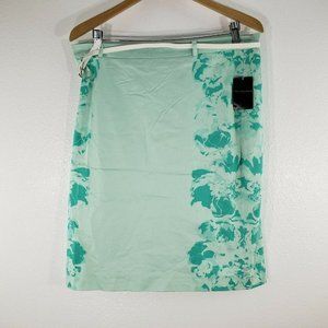 Nue Options Womens Skirt Size 12 Straight Pencil Teal Blue Floral Belted New