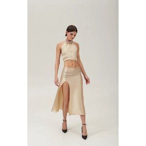 Nue Studio Laetitia Skirt in Champagne Gold Silk Belted Crystal M NWT $865