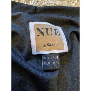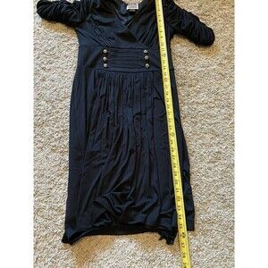 Nue by Shani Dress Size 6 Black Ruched 3/4 Sleeves Buttons Pleating Crossover