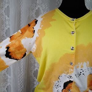 Nue Options Sunshine Yellow Floral Women Sweater Size L