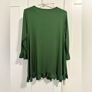 Nuggles green blouse with ruffled details. Has a minor snag in the front towards the bottom (as pictured).