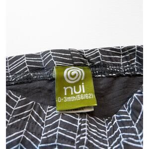 Gray leggings with white abstract print from Nui Organics in size 0-3 months. 95% organic cotton/5% Lycra. In very good pre-loved condition. *Initial written on back of tag.