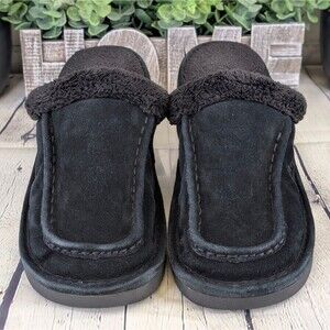 The Ed slipper has a leather exterior and is plush-lined for warmth and comfort. The open back offers the ultimate in practicality.