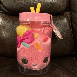 A cupful of cuteness is what makes a Num Noms. Num Noms are the cutest mini dishes and they smell so delicious! Num Noms surprise in a jar brings mystery to the world of plush characters. Soft and scented plush characters are so sweet and fluffy. The Mason jar they come in doubles as a piggy bank or storage for your Num Noms. Character really smells like birthday cake!!!