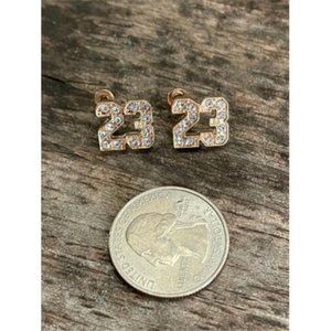 Number # 23 Basketball Gold Tone Iced Out CZ Stud Jordan Earrings