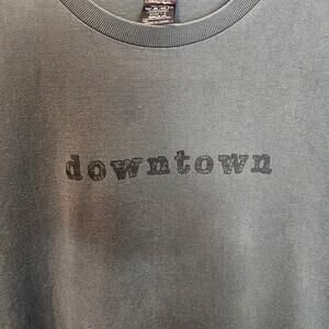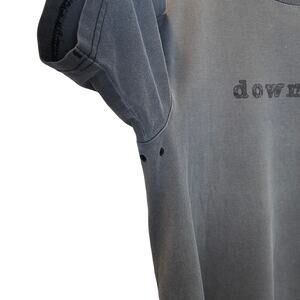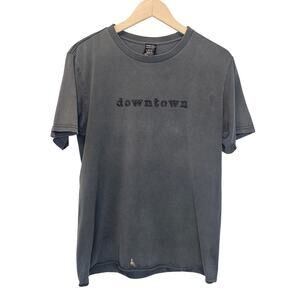 A faded and distressed Number (N)ine tee shirt that features 'Downtown' scripted across the chest and an interesting figure across the back.