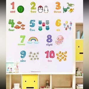 These educational wall stickers include 1-10 ten numbers which combine cartoon animals, enough to decorate children's rooms or classrooms