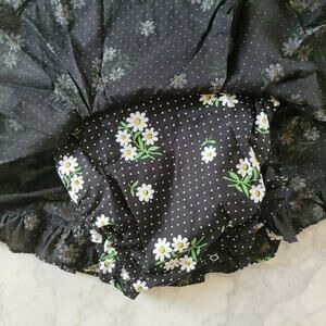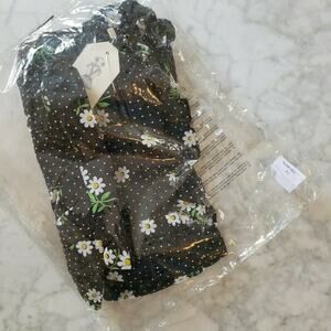 Numi Black Flocked Daisy Pinafore, size 3t. New with tag. Straps have additional button holes to adjust length. Attached bloomers have snaps at crotch.