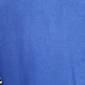 Numph Long Sleeve Cardigan clasp and hook front closure puff sleeves with fitted ribbed cuffs. Black and white stripe detail to the front and back on a solid blue. Size small. 65% viscose, 35% nylon. Condition excellent. Lightweight transitional piece.