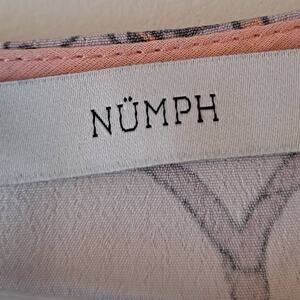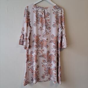 Numph Light Plush Pink Floral Crewneck Peplum Dress with Bell Sleeves