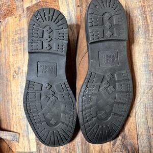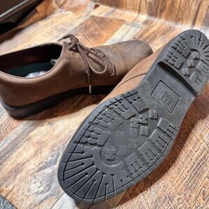 Pre-owned Nunn Bush men’s oxford shoes in size 9.5M. Genuine leather upper with leather lining and durable rubber outsole. Comfortable, rugged style suitable for casual or semi-formal wear.