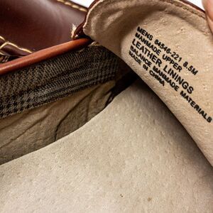 Moccasin stitching with ribbed rubber soles reaching up the back heel, Dual Comfort Memory Foam with leather lining, and smooth, cognac brown uppers.